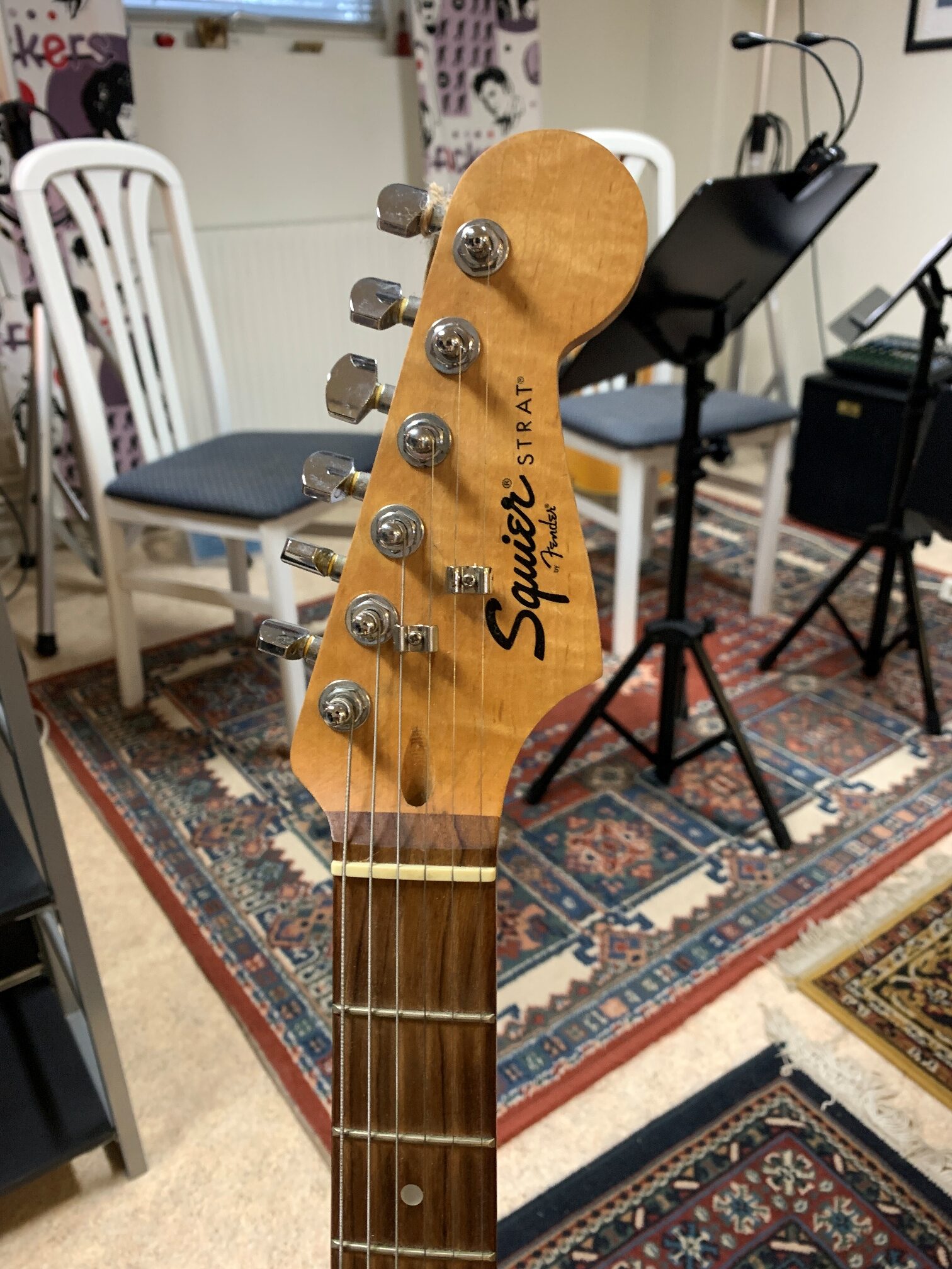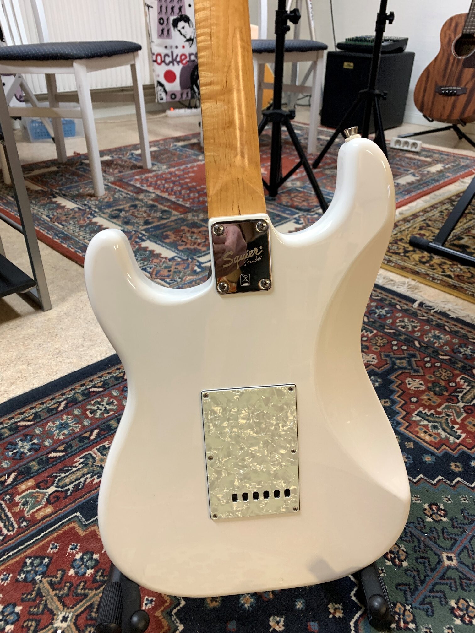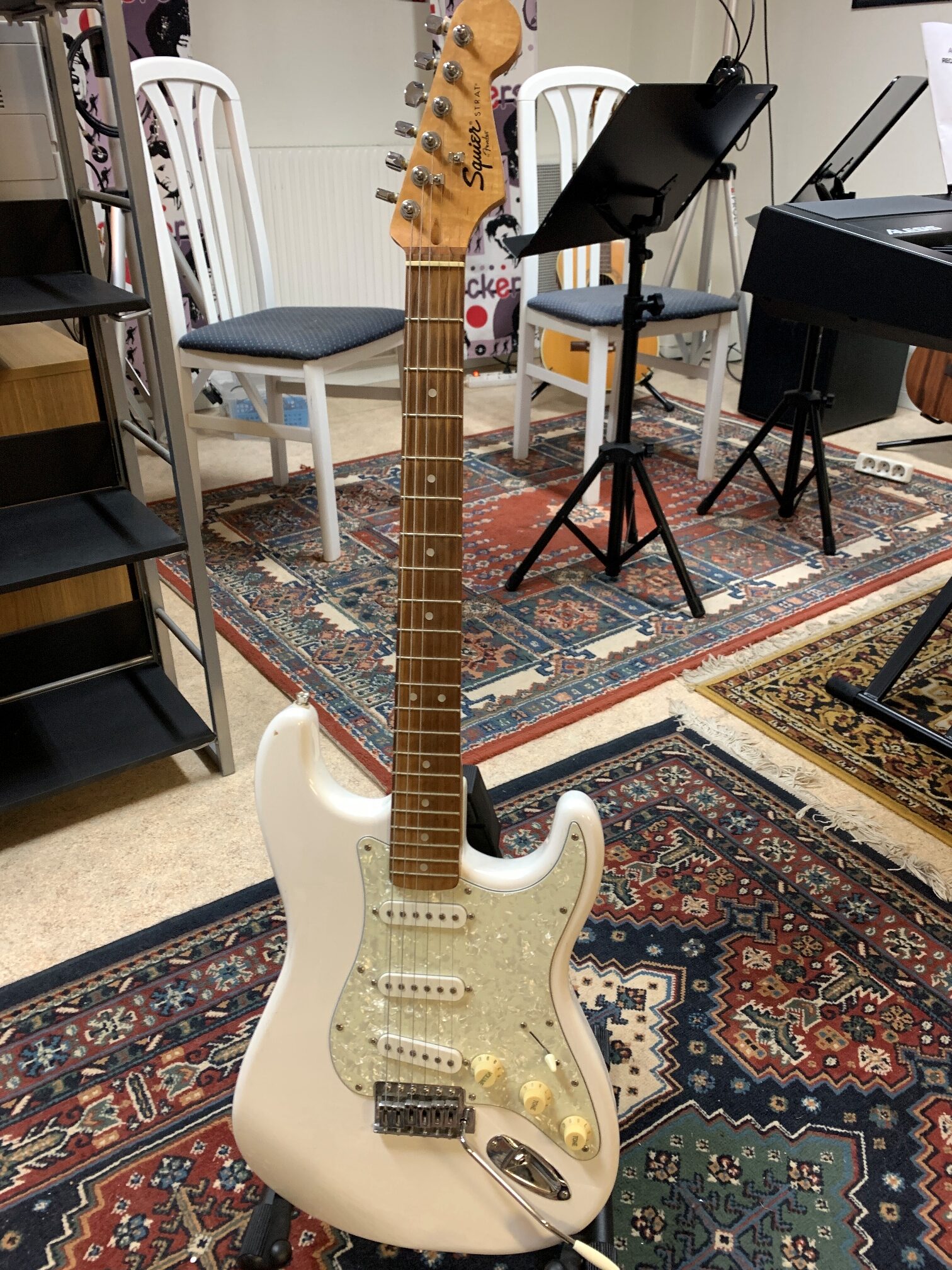 Squier by Fender Stratocaster levererar den klassiska Fender-känslan med ett lättspelat greppbräde och ett mångsidigt sound. Perfekt för dig som vill ha en gitarr som funkar lika bra hemma, i replokalen eller på scen.